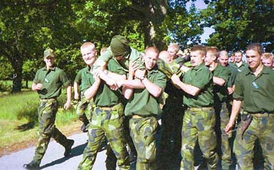 marching around carrying heavy shoulder weight, running in boots though