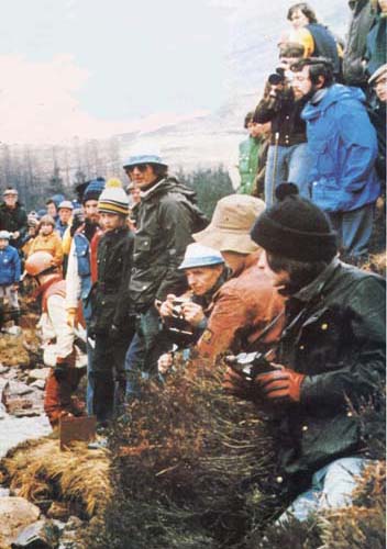 Convivial fun was often to be had as survivors of Scrambles hosed one another down and water-fights were inevitable. In the early days of plastic bin bags, the worst of sodden togs' were peeled off and stowed in panniers before the drinking began. The local community was mainly involved in hill farming or the tourist industry, and lively Sunday lunchtime drinking session were a tradition in the area out of season. On Trial' days the local crowd was sometimes outnumbered by in-comers.