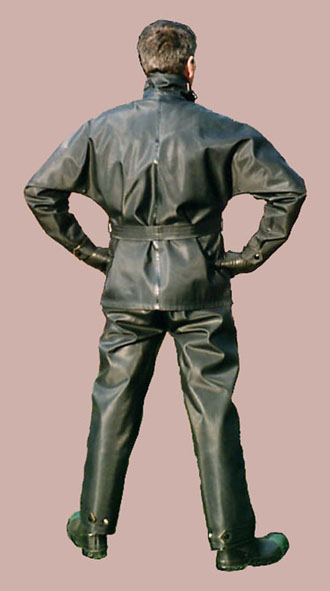 a latex cat-suit, all rubber diving suit, foul weather naval oilskins