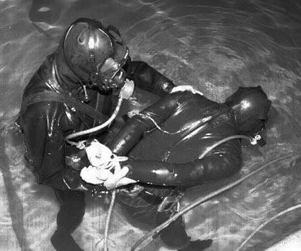 He also described in enthusiastic detail, the difficulties of getting out of a heavy old fashioned neck-entry dry suit without assistance.