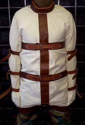 Hands are trapped inside closed sleeve-ends which are attached to the