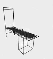 The neck to ankle lashing complete, Robert stepped aside and moved to a cleat where a ceiling rope that supported the top of the ladder, and released it. This allowed the ladder to gently hinge down into a horizontal position across the length of the metal table/cage which supported it at waist height.