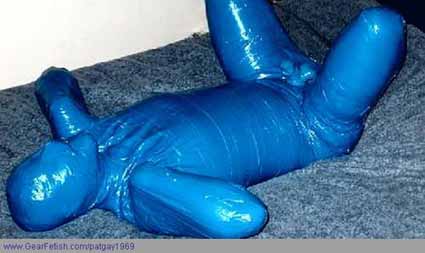 Alternatively, a full body taping with arms secured above the head (see left) can be quite a trip. But loss of circulation may occour if once taped, the body is not lowered into a horizontal position.