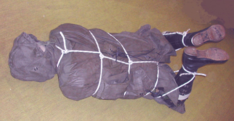 submerged under water, jail cells and mummification in wet sheets.